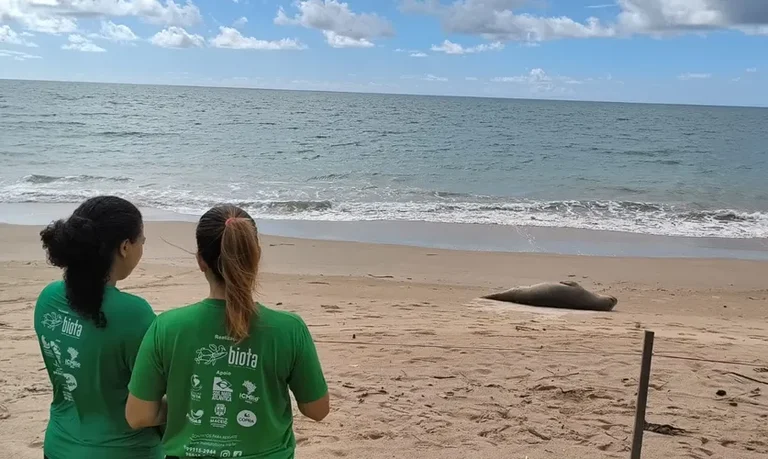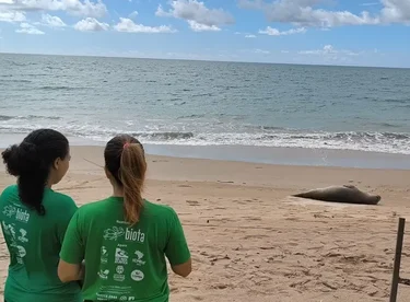 Elefante-marinho passeia por praias de AL enquanto muda a pelagem