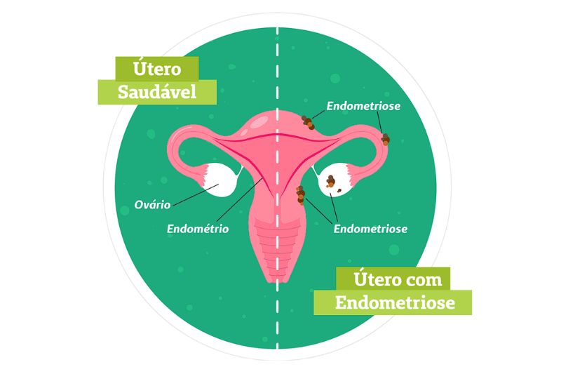 O endométrio é o tecido que reveste a parede interna do útero e se renova a cada ciclo menstrual. A endometriose ocorre quando parte desse tecido cresce fora do útero, atingindo órgãos como ovários, trompas, bexiga, intestino e reto.Essas células continuam reagindo aos hormônios do ciclo menstrual, causando inflamações, dor e aderências nos órgãos afetados.