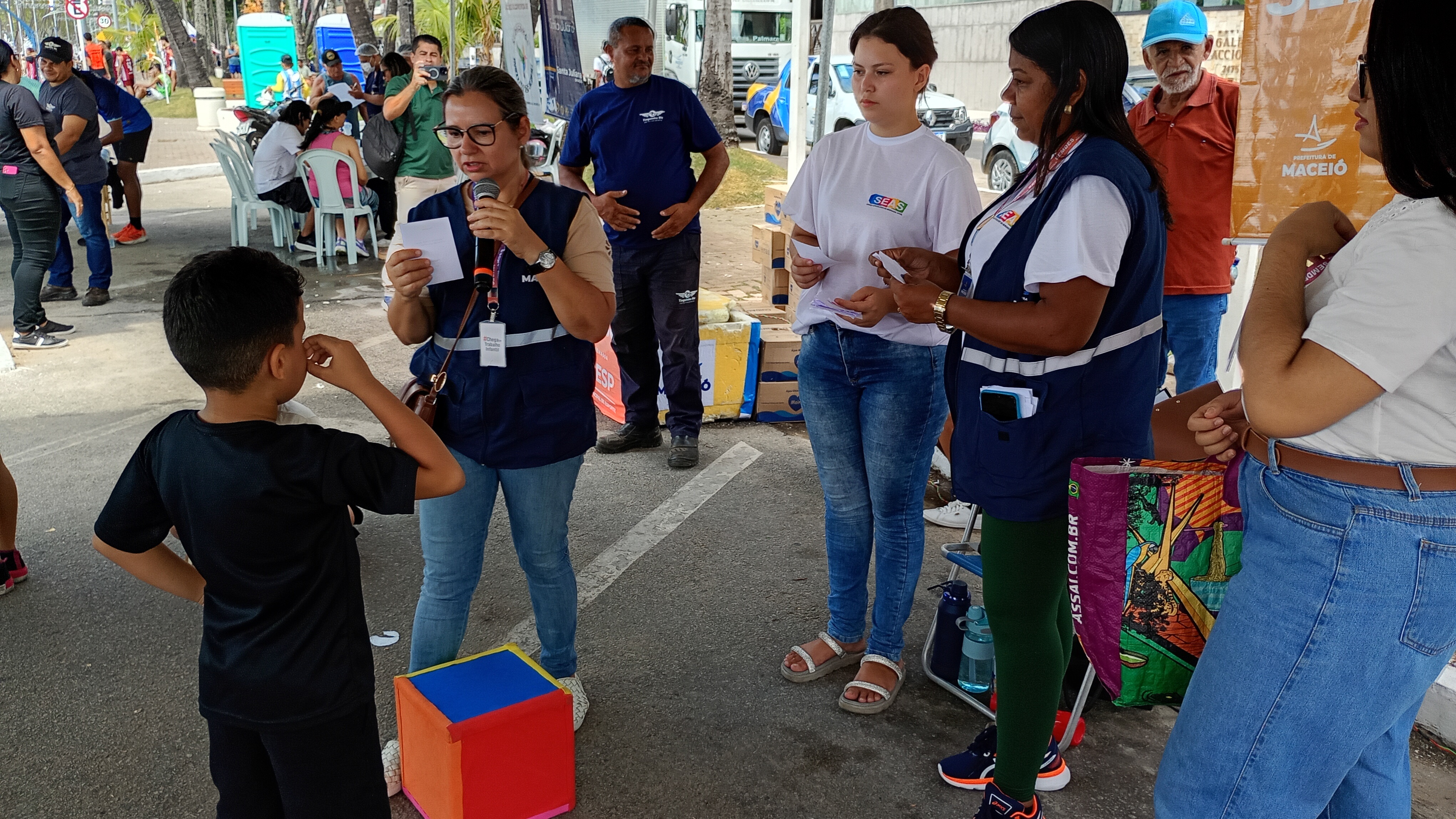 A Secretaria de Desenvolvimento Social, Primeira Infância e Segurança Alimentar de Maceió (Semdes) realizou, no último domingo (7), mais uma ação de combate ao trabalho infantil, na Rua Aberta, da orla de Ponta Verde. A ação teve o apoio da Secretaria Municipal de Esporte (Semesp).