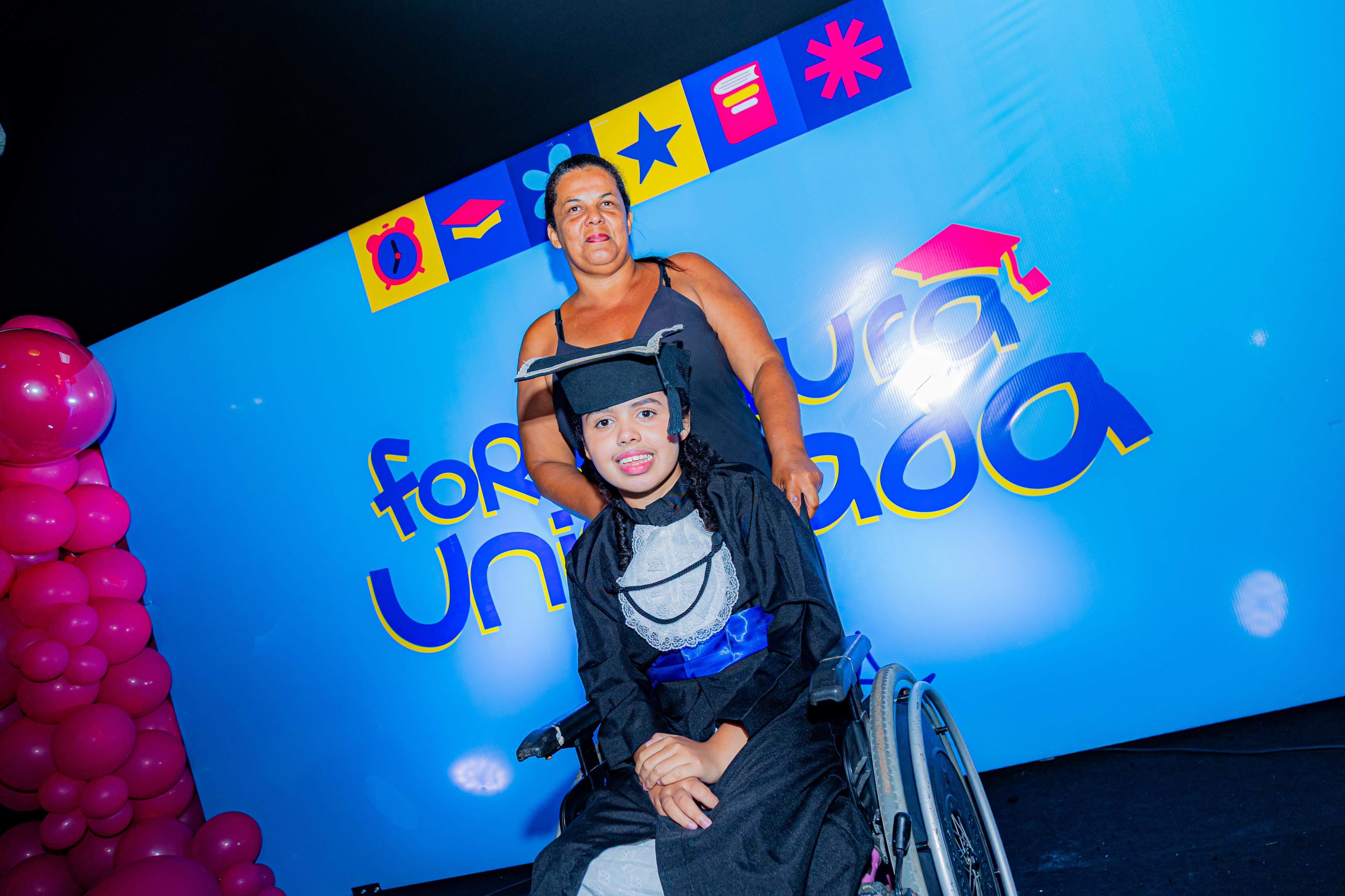 “É muita luta. A gente enfrenta preconceitos todos os dias, mas hoje é um momento de felicidade e superação. A escola acolheu minha filha, adaptou tudo direitinho, e hoje ela está aqui provando que conseguiu”, disse emocionada.