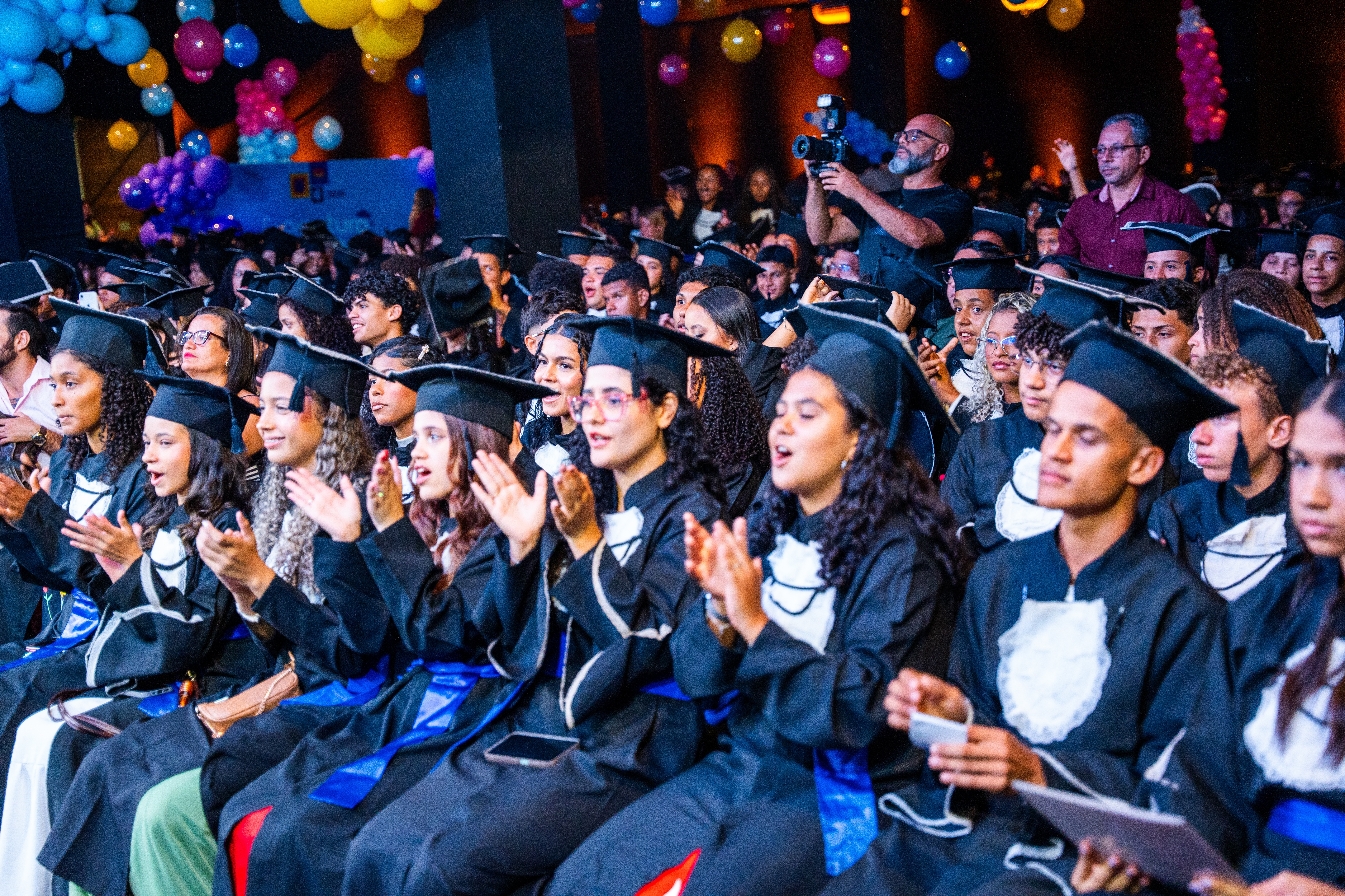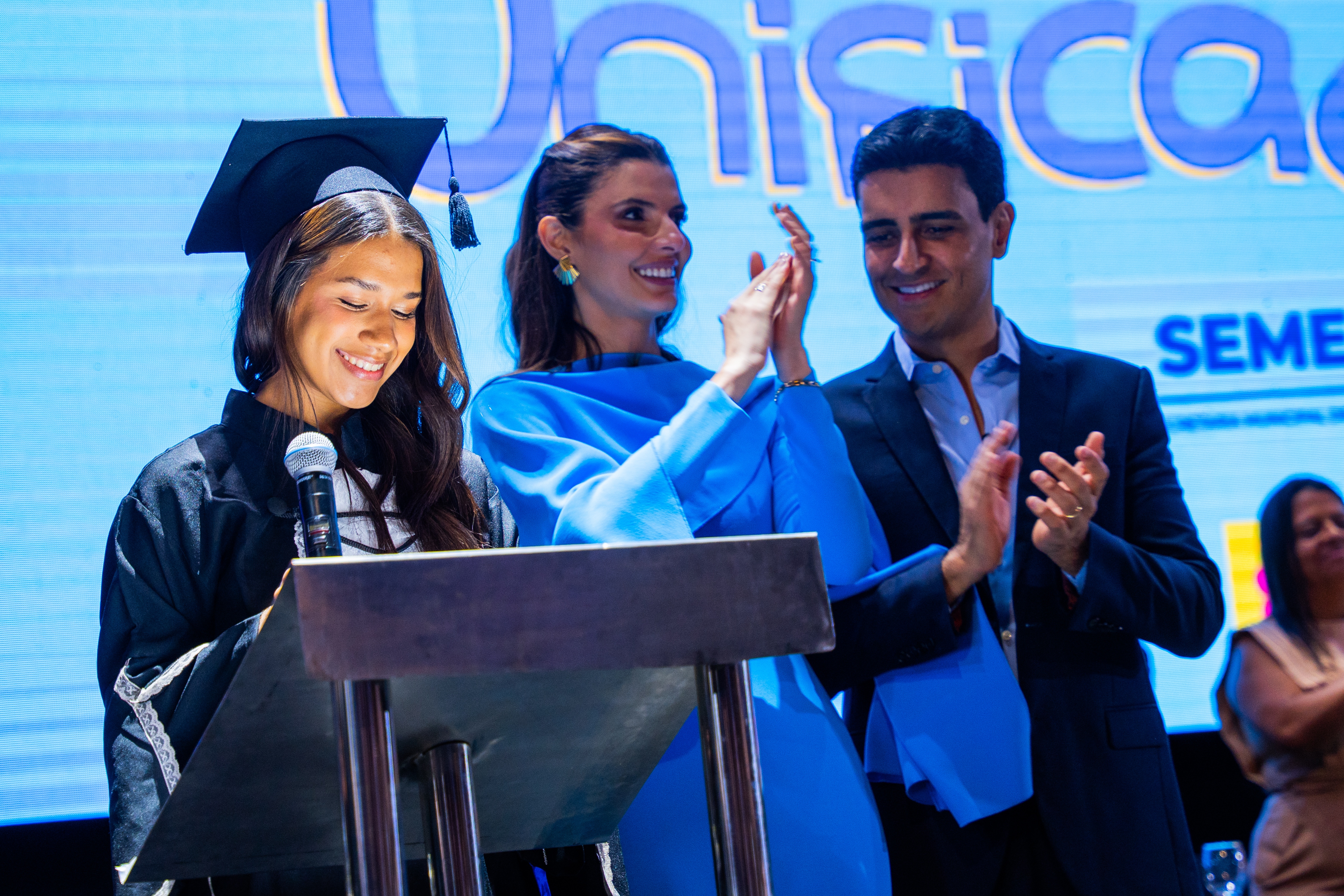 Promovido pela Prefeitura de Maceió, por meio da Secretaria Municipal de Educação (Semed), o evento contou com beca, capelo, trajes sociais elegantes, entrega simbólica de diplomas, sessões de fotos, discursos, canudos e música ao som de DJ.