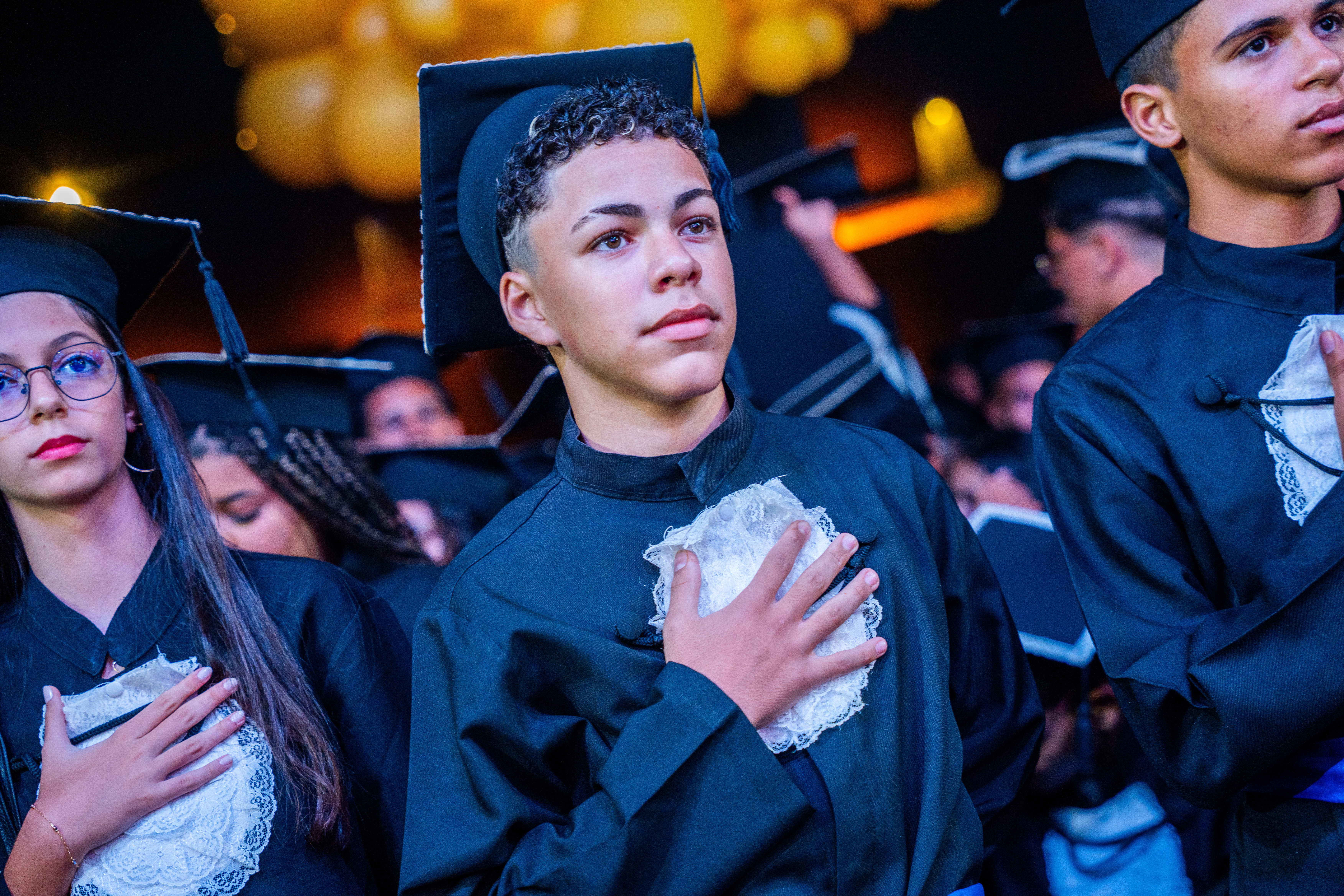Laura Beatriz resumiu o sentimento da noite com poucas palavras. “Estou feliz, mas um pouco triste porque vou sair da escola. Mesmo assim, é uma realização estar aqui com a minha turma”, declarou.