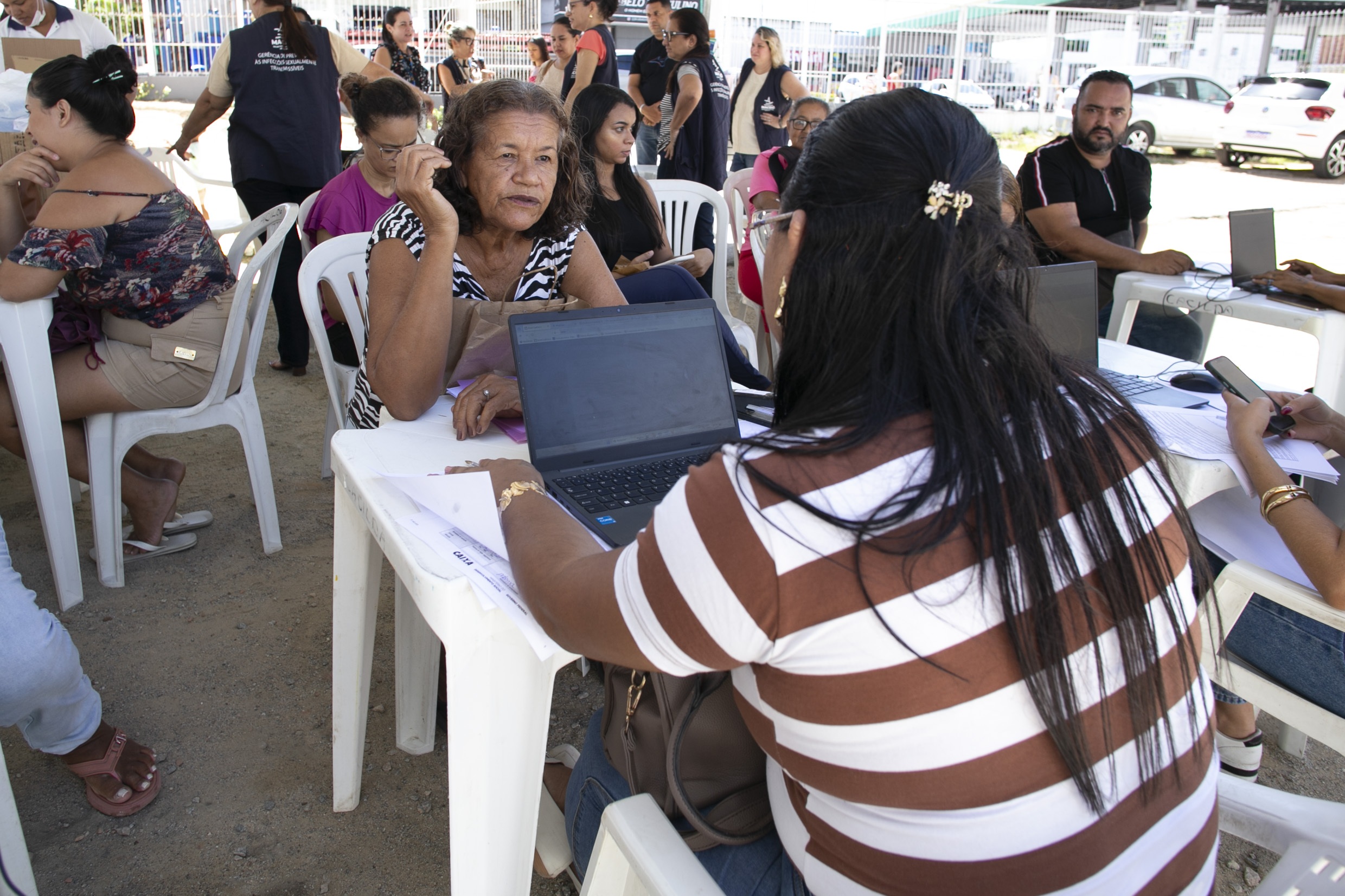 Na manhã desta quinta-feira (15), moradores do Jacintinho receberam serviços do Cadastro Único. A ação ocorreu na Associação do Jovem Periférico, no estacionamento do Ginásio Arivaldo Maia.