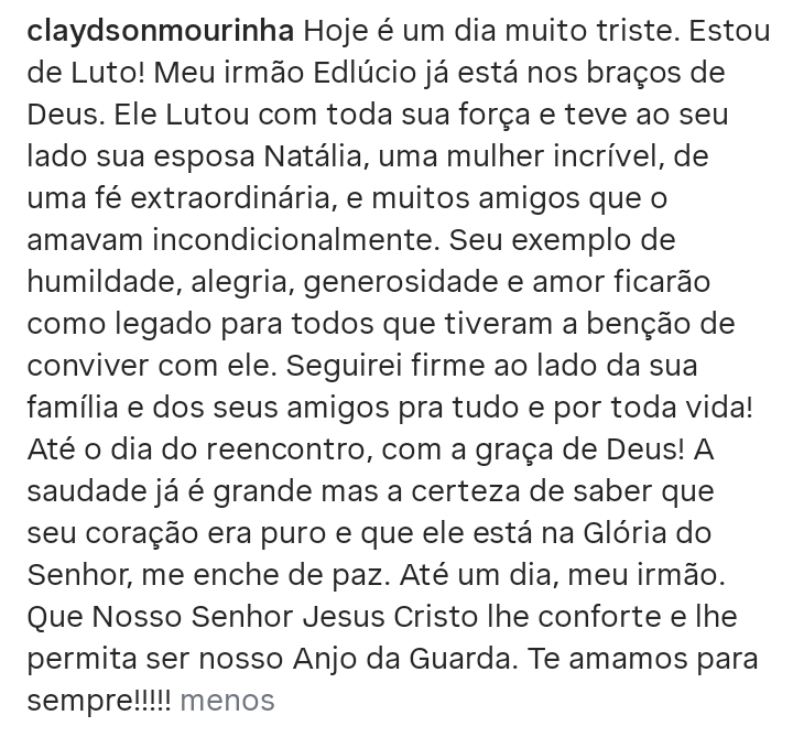 O secretário de Saúde de Maceió, Claydson Moura, escreveu sobre a partida de Edlúcio.