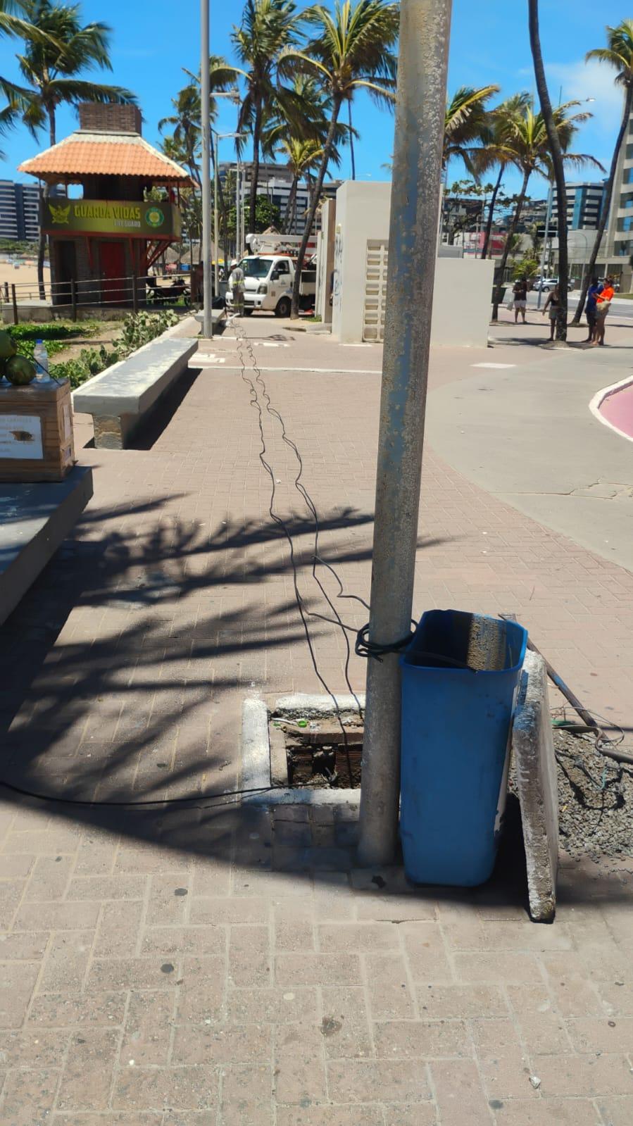 Técnicos da Ilumina repõem cabeamento furtado no Posto 7, na Jatiúca