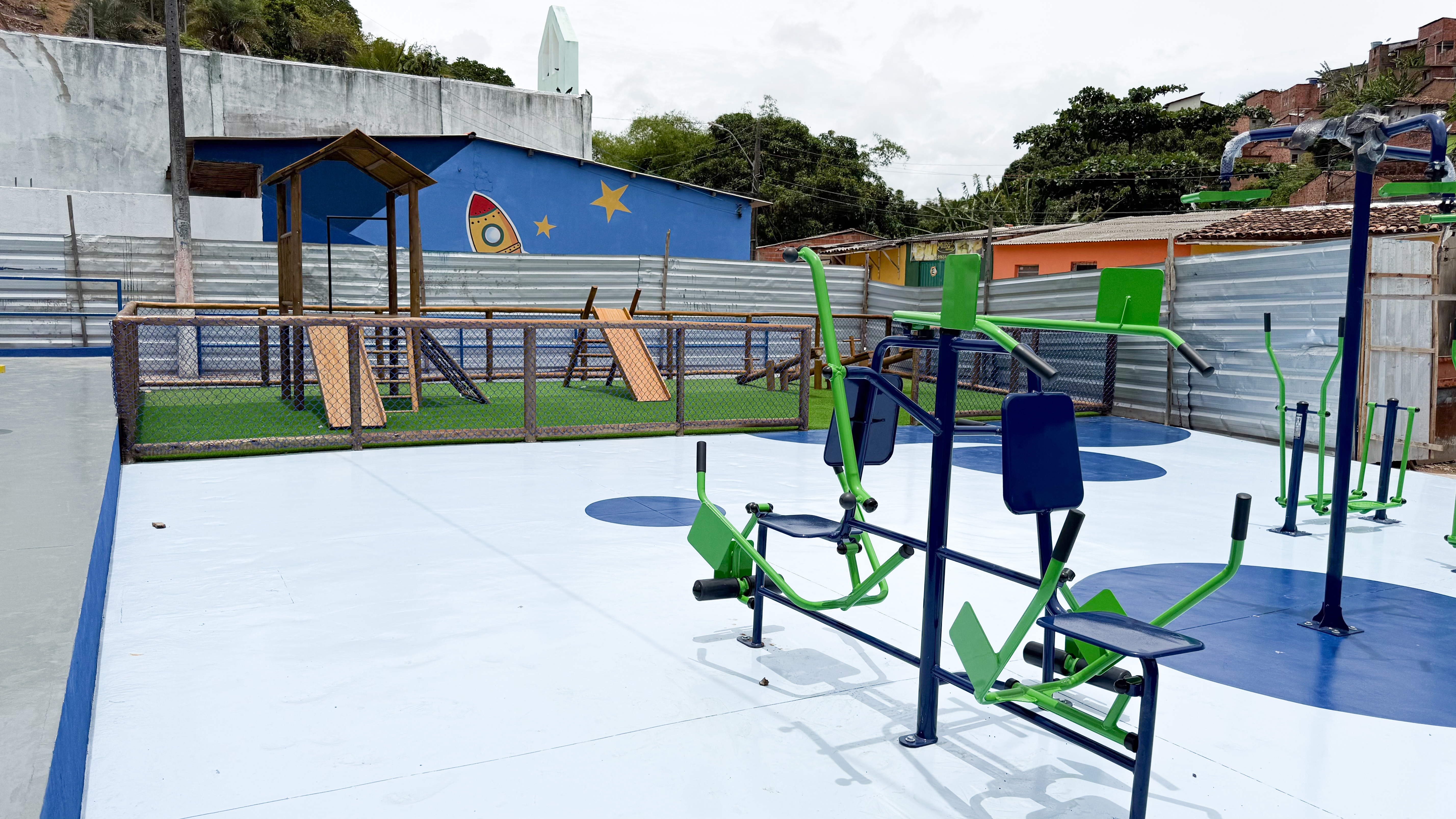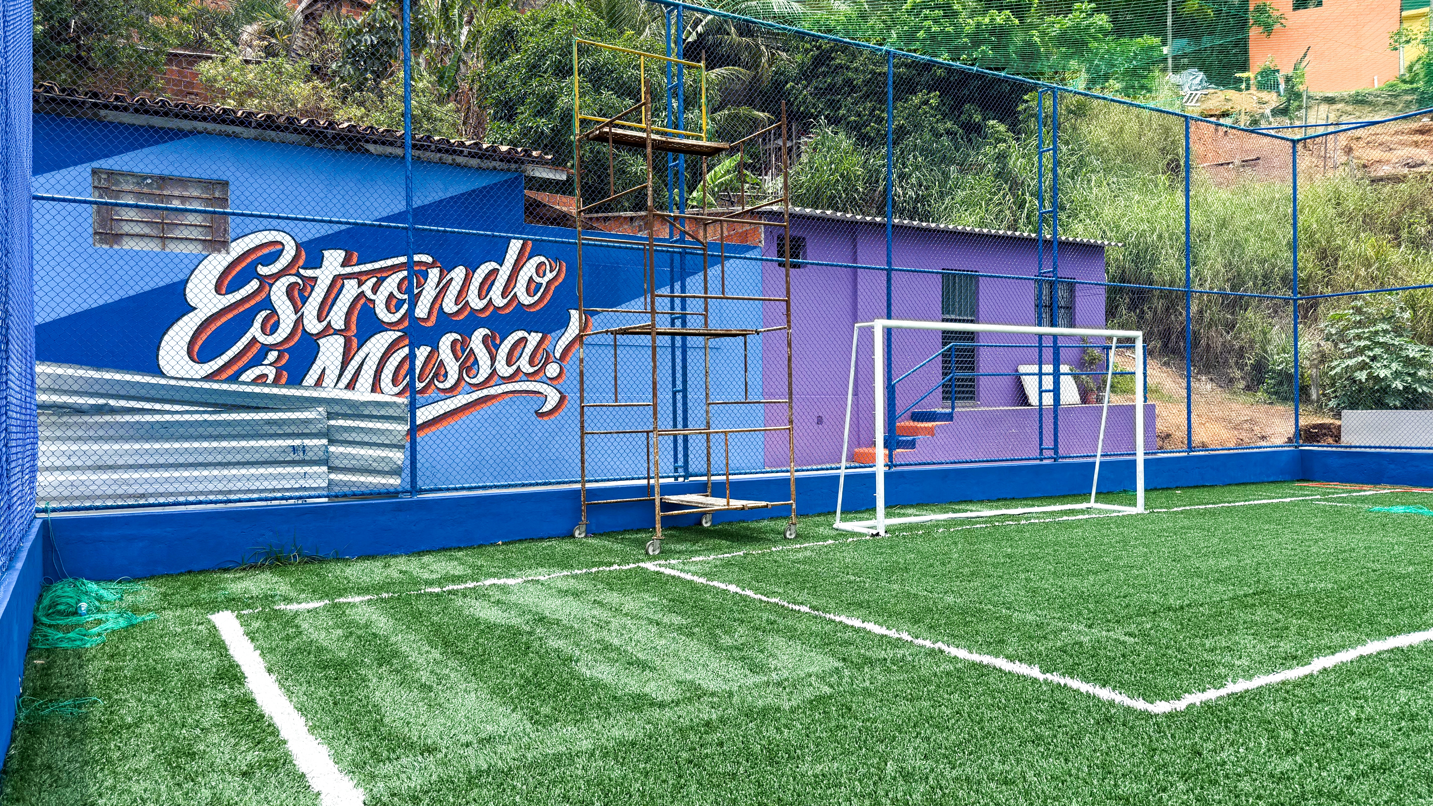 Outro importante investimento é a quadra do Estrondo, equipada com campo de grama sintética, telas de proteção e arquibancadas. As intervenções também incluem pavimentação de acessos, instalação de iluminação em LED, pintura de residências e melhorias nas escadarias, fundamentais para garantir mais segurança, especialmente em períodos de chuva.