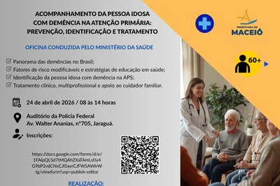 16/04/2026 as 13h04Saúde abre inscrições para oficina sobre acompanhamento da pessoa idosa com demência -