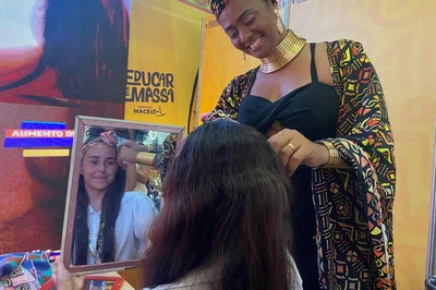 06/11/2025 as 10h24Amarração de turbantes encanta público no estande da Semed -