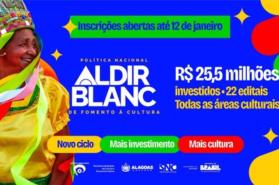 Alagoas 27/12/2025 as 10h10Secult anuncia live para orientar inscrições dos editais do Ciclo 2 da PNAB em Alagoas -