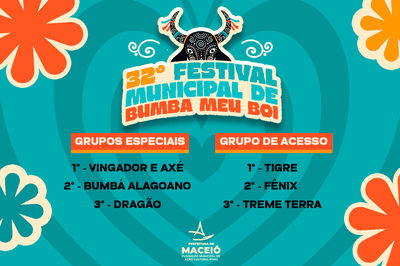 27/10/2025 as 08h15Vingador, Axé e Tigre conquistam títulos de campeões do 32º Festival Municipal de Bumba Meu Boi -