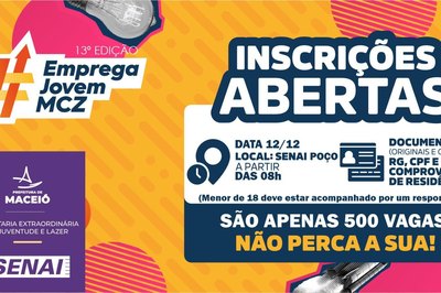 11/12/2025 as 15h23Prefeitura de Maceió abre inscrições para mais uma edição do Emprega Jovem -
