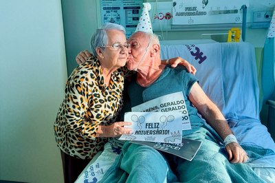 03/02/2026 as 16h57Aos 80 anos, aposentado celebra aniversário com alta médica no Hospital da Cidade -