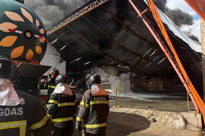 Após combater chamas, Bombeiros realizam vistoria em fábrica incendiada, em Maceió